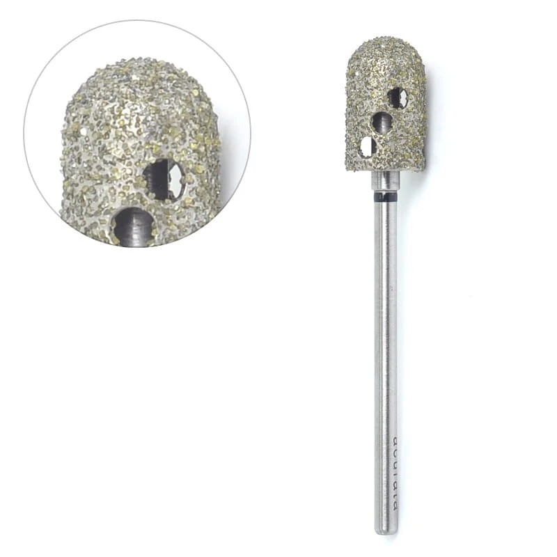 Frez diamentowy próżniowy Średnica 8 mm Wysokość 13 mm Długośc trzpienia 3,5 cm Frez bardzo wytrzymały z dziewięcioma dziurkami umożliwiającymi swobodny przepływ wody lub powietrza Idealnie nadaje się do zabiegów pedicure dzięki swojej mocnej gradiacji bardzo szybko wygłada skórę stóp