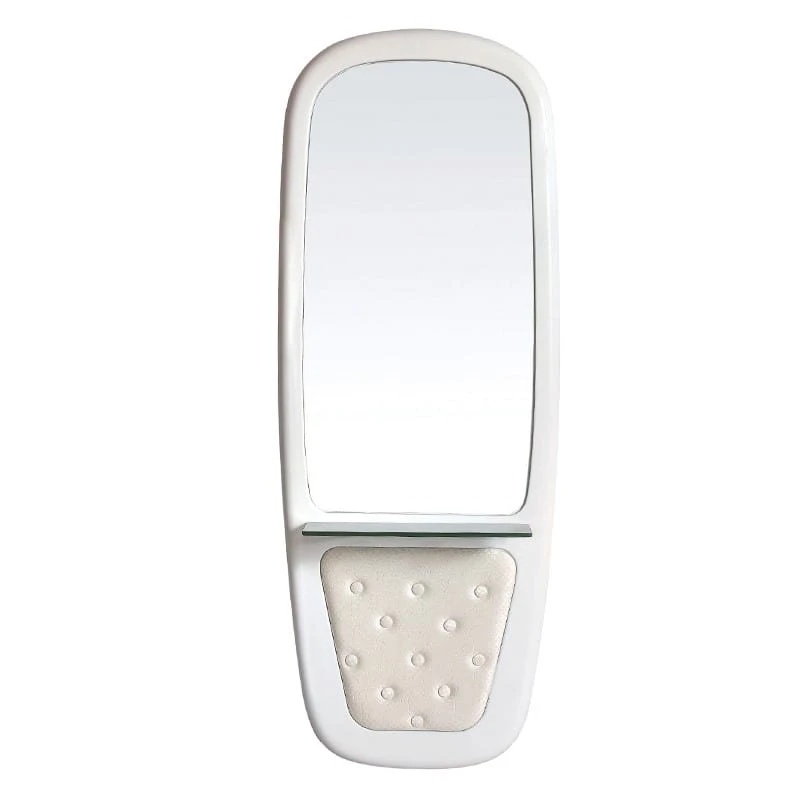 Stylowa konsola fryzjerska. Lustro umieszczone w pięknej, ozdobnej ramie. Pod lustrem półeczka na drobiazgi. Mebel pięknie wyprofilowany, doskonalej jakości. Wykończenie najwyższej klasy. Elegancki element wnetrza który podkresli charakter twojego salnu.