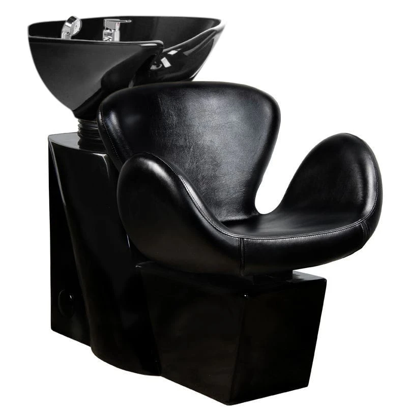 Profesjonalna myjnia fryzjerska -stabilna, niezwykle wygodna, solidnie wykonana. Nowoczeny design czyni z niej piękne dopełnienie wyposażenia nowoczesnego salonu fryzjerskiego. Siedzisko o opływowym kształcie, wykonane z wysokiej jakości łatwej w pielęgnacji ekoskóry. Silikonowa podkładka pod głowę stabilizuje głowę klienta i pozwala na jej wygodne ułożenie na myjce. Misa myki w kolorze białym, z możliwością regulacji swojego nachylenia. Myjnia w kolorze czarnym.