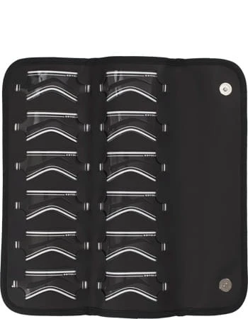Stwórz idealny, indywidualny kształt brwi za pomocą szablonów wielokrotnego użytku Eyebrow Stencils. Szablon umieść poziomo na łuku brwiowym, a następnie weź biały Faceliner i obrysuj brwi tak, aby wszystkie odsłonięte włoski były pokryte białą kredką. Włosy w kolorze białym pozostaw, a pozostałe usuń za pomocą pęsety Tweezer. Opakowanie zawiera 12 różnych szablonów