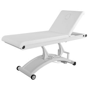 Leżanka 2241 to dwuczęściowe łóżko do masażu i zabiegów kosmetycznych z elektryczną regulacją wysokości (1 silnik) i gazowym podnośnikiem oparcia. Stabilna stalowa rama z 2 kółkami ułatwia przemieszczanie leżanki w gabinecie. Tapicerka biała, łatwa do dezynfekcji.