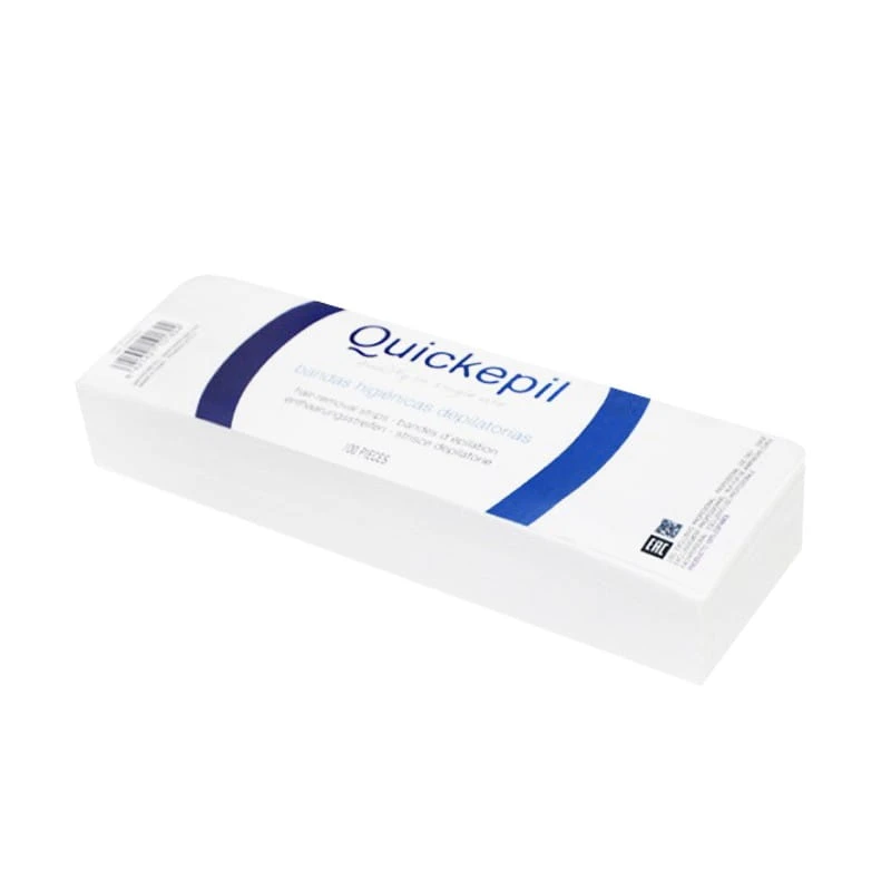 Marka Quickepil to profesjonalne akcesoria do depilacji woskowej przeznaczone dla gabinetów kosmetycznych. Produkty jednorazowe Quickepil zapewniają higienę i komfort pracy przy każdym zabiegu. Paski do depilacji 22×7 cm w zestawie 100 szt. — standardowy rozmiar do większości zabiegów depilacji woskowej. Pakowane po 100 szt. — ekonomiczny format do codziennej pracy w gabinecie.