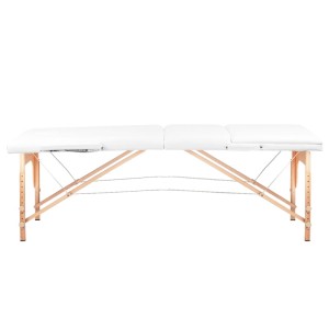 Składany stół do masażu Wood Komfort 3-segmentowy – kolor biały, drewniana rama